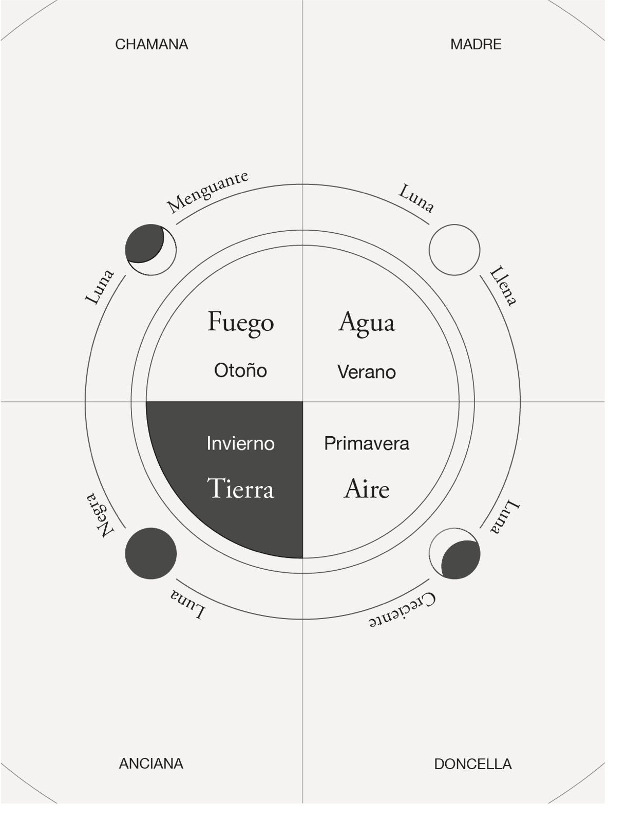 La Chamana es la alquimista, la mujer que atraviesa el fuego y emerge con dones de visión, sanación y transformación. Porta el conocimiento de los umbrales y de la transformación interna. Ya no vive para otros, sino que encarna su propio fuego. Se asocia con el otoño, su elemento es el fuego y su luna es la luna menguante.
