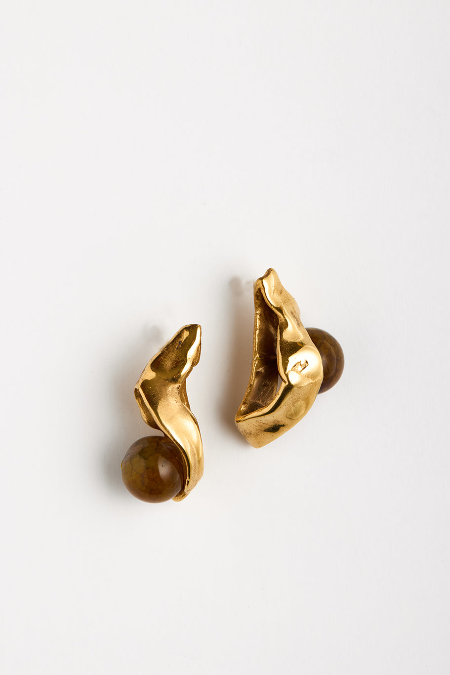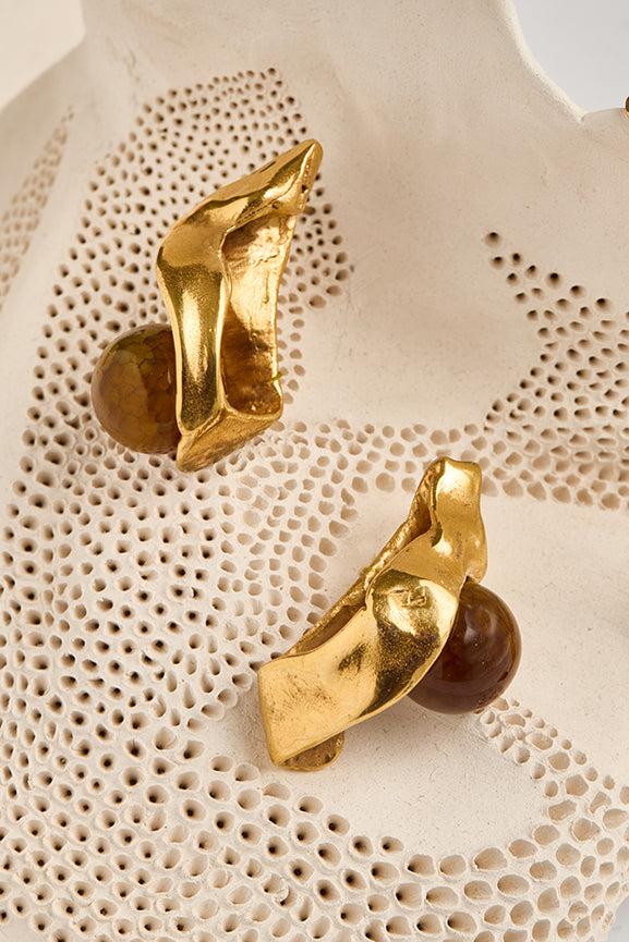 Aros de bronce enchapado en oro, con piedra ámbar.